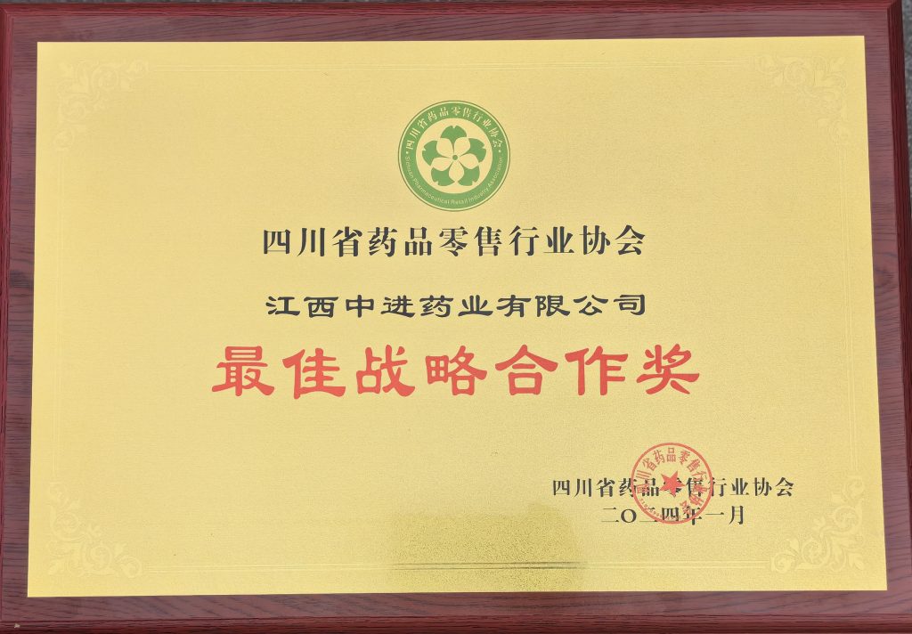 四川省藥品零售行業(yè)協(xié)會最佳戰(zhàn)略合作獎(2024年) 發(fā)布時間: 2024年01月15日 11:19:17 閱讀量: 四川省藥品零售行業(yè)協(xié)會最佳戰(zhàn)略合作獎(2024年) 下一篇:江西中進藥業(yè)有限公司1月招聘信息上一篇:中國醫(yī)藥物資協(xié)會“零售藥店賦能分會執(zhí)行秘書長單位”(2024年)