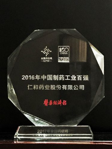同時,由中國醫藥經濟報主辦的“2016年度中國制藥工業百強”榜單進行了發布,仁和藥業股份有限公司獲此殊榮。