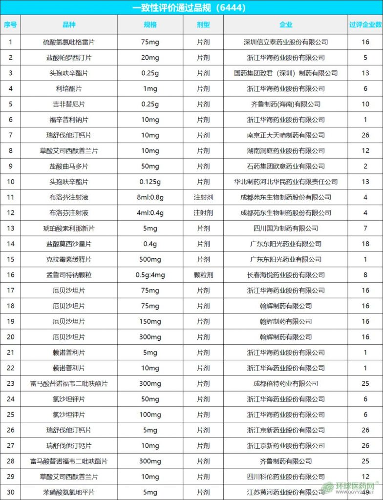 基于《中國上市藥品目錄集》、各大醫藥數據庫以及各上市企業公告,整理了目前最新最全的一致性評價過評產品匯總表。