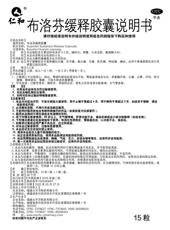 布洛芬緩釋膠囊(15粒)