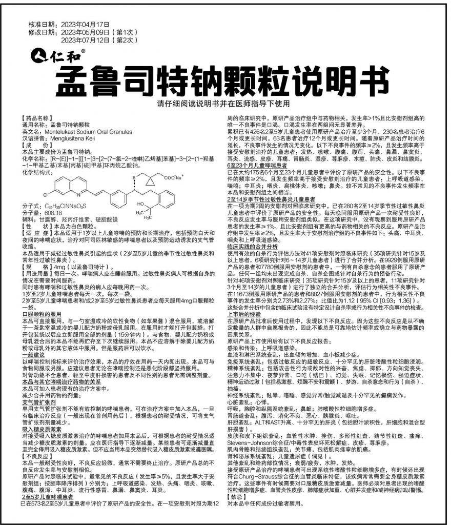 孟魯司特鈉顆粒