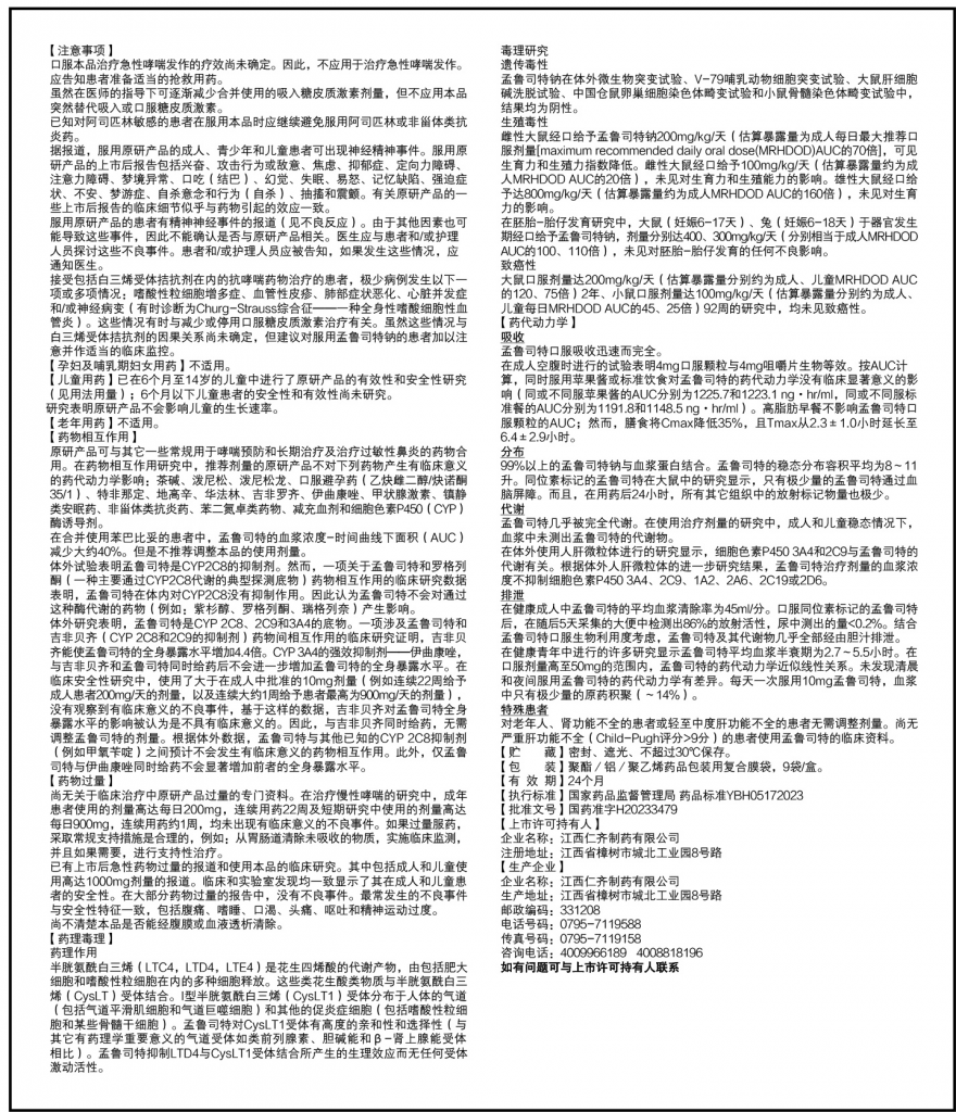 本品適用于1歲以上兒童哮喘的預防和長期治療,包括預防白天和夜間的哮喘癥狀,治療對阿司匹林敏感的哮喘患者以及預防運動誘發的支氣管收縮。 本品適用于減輕過敏性鼻炎引起的癥狀(2歲至5歲兒童的季節性過敏性鼻炎和常年性過敏性鼻炎)。